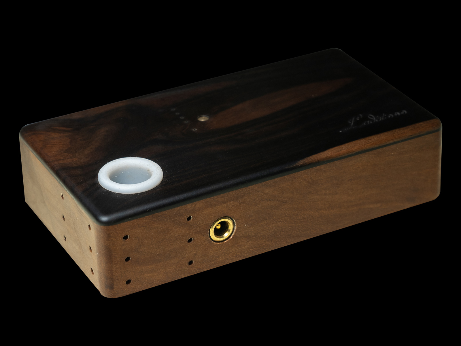 IH V7 is a limited edition induction heater, produced in only 30 units, featuring a handcrafted solid wood enclosure. Each unit is individually made, ensuring uniqueness in both material and finish.