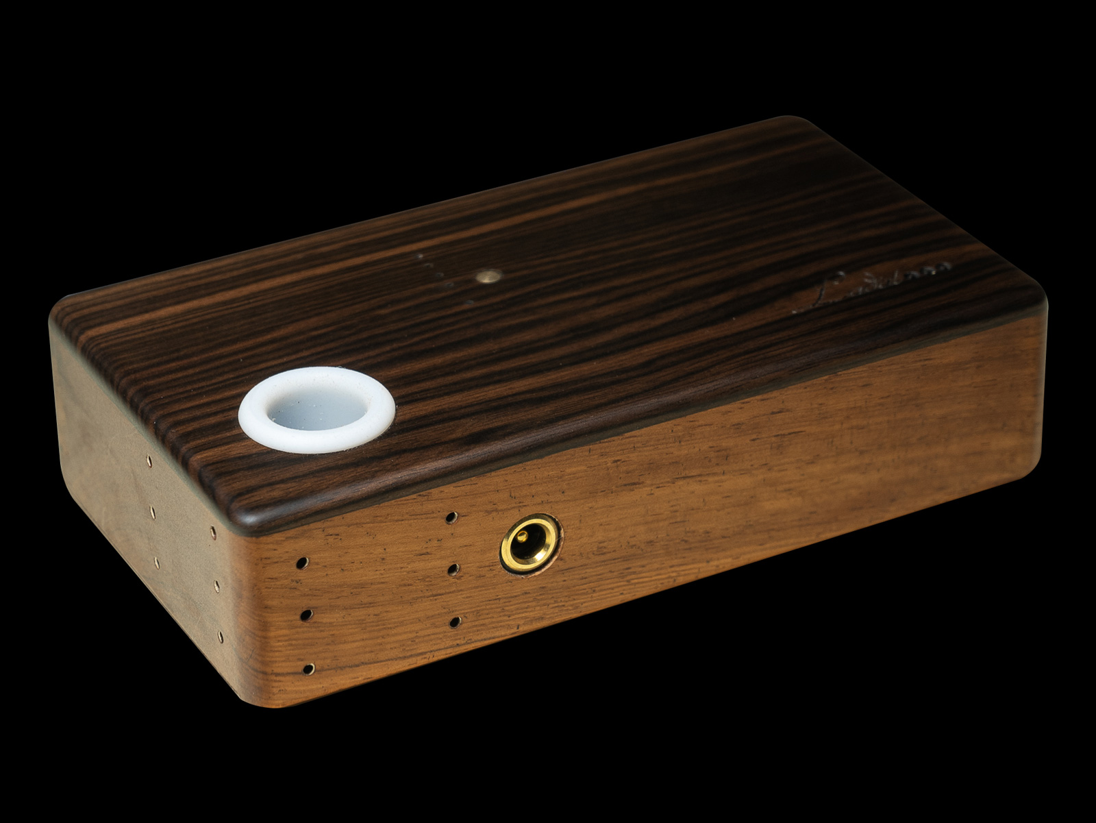 IH V7 is a limited edition induction heater, produced in only 30 units, featuring a handcrafted solid wood enclosure. Each unit is individually made, ensuring uniqueness in both material and finish.