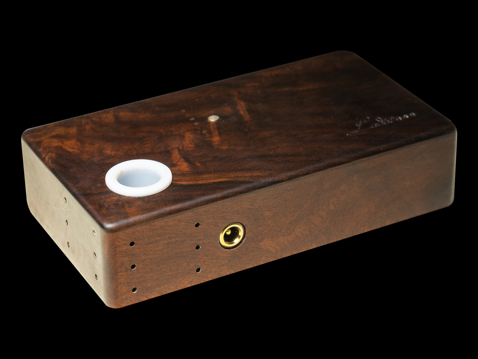 IH V7 is a limited edition induction heater, produced in only 30 units, featuring a handcrafted solid wood enclosure. Each unit is individually made, ensuring uniqueness in both material and finish.