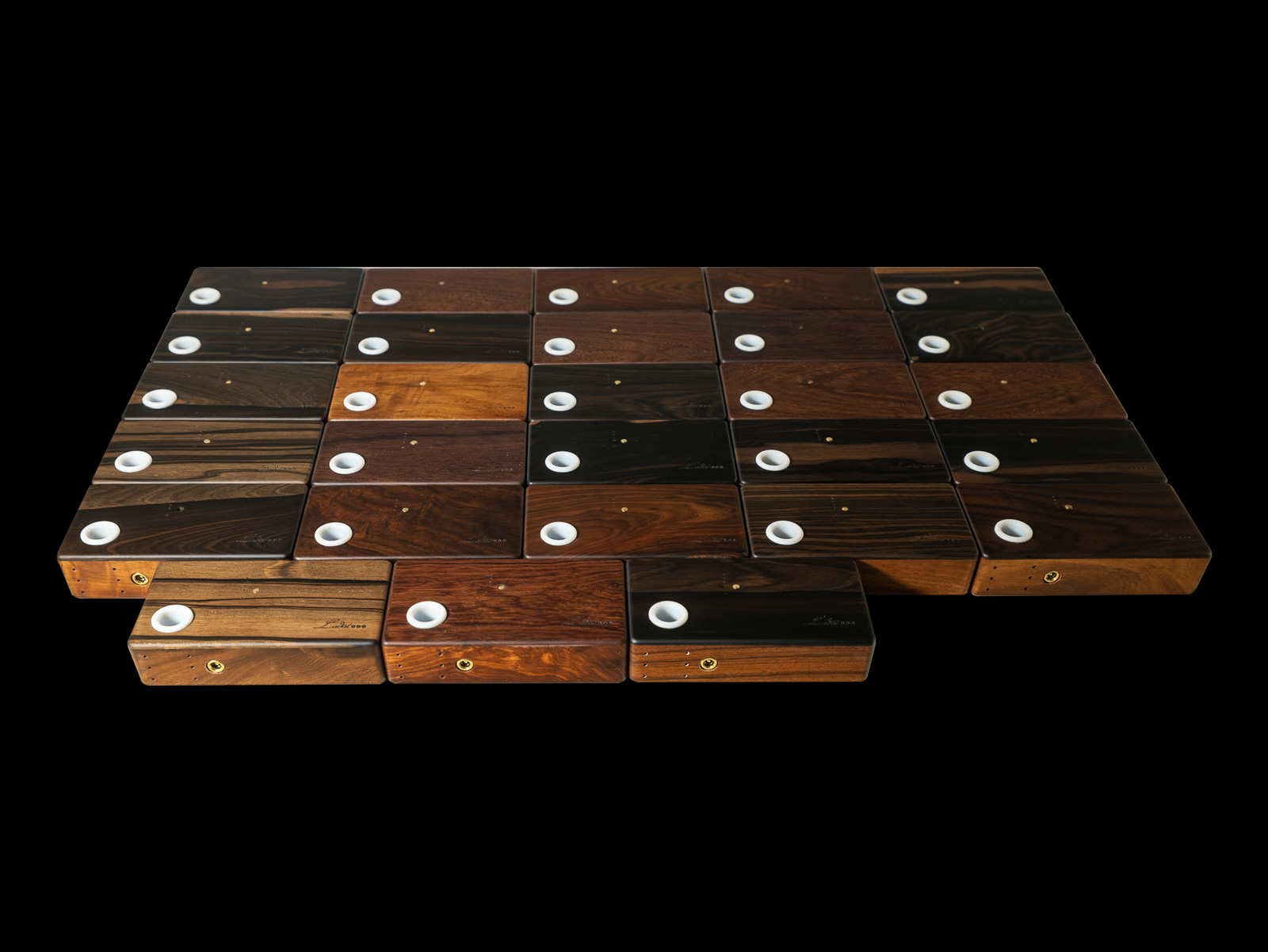 The outer shell is crafted from carefully selected Mun wood and Trắc (Rosewood), combined with a solid Pachy Redwood (Gỗ Đỏ Pachy) structural frame. The wood undergoes multiple stabilization and treatment processes to achieve maximum long-term stability and durability.